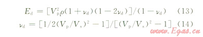 式中Ed為巖石動(dòng)態(tài)彈性模量,MPa;vd為巖石動(dòng)態(tài)泊松比;Vp為縱波速度,m/s;Vs為橫波速度,m/s;ρ為巖石密度,g/cm3。