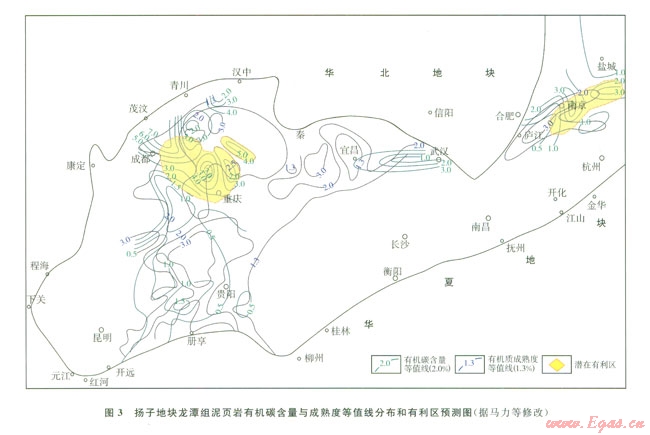 2)綜合分析以上要素后認為,龍?zhí)督M頁巖氣成藏條件縱向上看:中、上段優(yōu)于下段,橫向上頁巖氣的有利地區(qū)為上揚子川中、川東、渝西北和下?lián)P子蘇南地區(qū)。