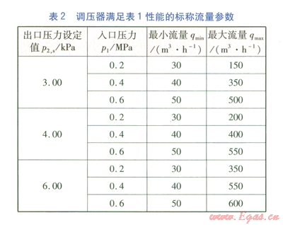 根據(jù)GB 27790-2011《城鎮(zhèn)燃?xì)庹{(diào)壓器》(以下簡(jiǎn)稱GB 27790-2011)的規(guī)定,城鎮(zhèn)燃?xì)庹{(diào)壓器靜態(tài)特陛的合格與否需要通過(guò)靜態(tài)特性實(shí)驗(yàn)并根據(jù)實(shí)驗(yàn)數(shù)據(jù)繪制靜態(tài)特性曲線圖來(lái)判定。對(duì)某一型號(hào)的城鎮(zhèn)燃?xì)庹{(diào)壓器(標(biāo)稱參數(shù)見(jiàn)表l、2)進(jìn)行靜態(tài)特性實(shí)驗(yàn),并按照GB 27790-2011第