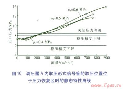 ②內(nèi)取壓位置對(duì)調(diào)壓器靜態(tài)特性的影響