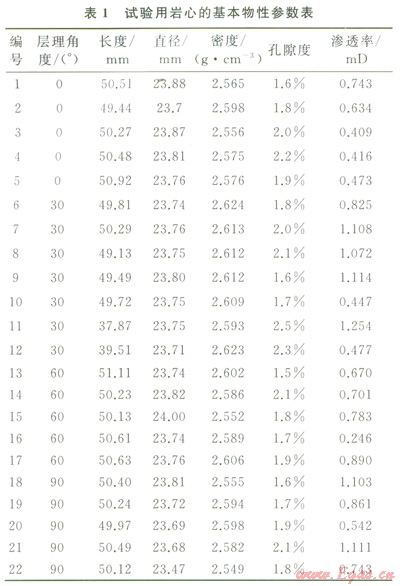 1 巖心制備及基礎(chǔ)物性參數(shù)