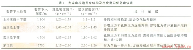 基于地應(yīng)力狀態(tài)、巖石力學(xué)、地層三壓力剖面的認(rèn)識,總結(jié)了九龍山構(gòu)造鉆進(jìn)各地層的井壁穩(wěn)定性。