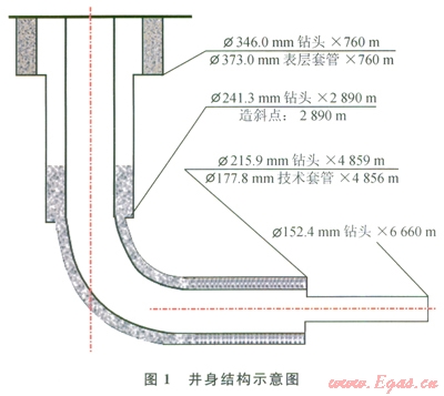 2)該井設(shè)計(jì)水平段3000m,前l200m水平段采用Æ215.9mm井眼,首次將Æ177.8mm套管下入長1200m的Æ215.9mm井眼內(nèi)。施工方案、鉆進(jìn)參數(shù)及鉆井液性能的選擇等需要逐步摸索,增加了施工的難度。