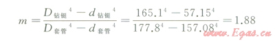 式中D鉆鋌為鉆鋌外徑,mm;d鉆鋌為鉆鋌內(nèi)徑,mm;D套管為套管外徑,mm;d套管為套管內(nèi)徑,mm。