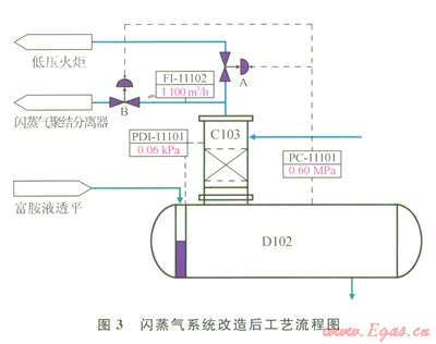 通過以上分析,閃蒸氣作為燃料氣并入燃料氣系統(tǒng)是可行的,但是為了避免燃料氣系統(tǒng)有大的波動,必須在工藝上改造優(yōu)化。