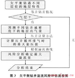 欠平衡鉆井溢流風(fēng)險(xiǎn)評(píng)估的核心是:根據(jù)欠平衡井鉆遇的地層特性,預(yù)測(cè)不同欠壓值下的地層出氣量,再通過壓井計(jì)算確定循環(huán)排氣時(shí)的最大套壓值,最后判定允許的溢流量及關(guān)井時(shí)間(圖3)。