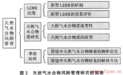 值得高興的是針對上述2個(gè)方面的問題,研究人員正在全力解決。目前越來越多的LDHI正被研制出來[11],國外已經(jīng)有很多油氣田在試驗(yàn)這些新的抑制劑。與此同時(shí),針對含天然氣水合物的油氣混合物漿的流動特性及堵塞特性的研究也在全世界如火如茶地展開。目前天然氣水合物風(fēng)險(xiǎn)管理的研究框架如圖2所示,目的就是為石油天然氣工業(yè)提供經(jīng)濟(jì)安全的油氣輸送方案[12~19]。