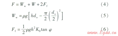 穩(wěn)定時管道承受的垂直荷載見圖l。由圖1可知,單位管長的垂直載荷F的計算式為:
