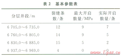 結(jié)合天然裂縫發(fā)育狀況,根據(jù)壓裂軟件模擬,將儲層縱向上分為4段進(jìn)行壓裂,分層井段如表2所示。