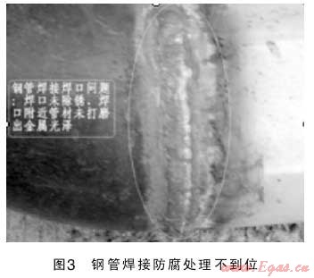 1)由于鋼管施工不遵守操作規(guī)程,在管道防腐或下管時(shí)已產(chǎn)生防腐層損壞,外防腐層起不到應(yīng)有的保護(hù)作用,致使管道產(chǎn)生外腐蝕穿孔;