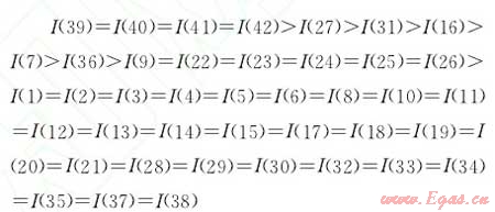 故障樹(shù)定性分析的主要任務(wù)是求出故障樹(shù)的全部最小割集,最小割集實(shí)際上可以在一定程度上代表系統(tǒng)的危險(xiǎn)性大小。當(dāng)一個(gè)最小割集內(nèi)的基本事件都發(fā)生時(shí),頂事件就必然發(fā)生。一般地,包含基本事件個(gè)數(shù)較少的最小割集比包含基本事件個(gè)數(shù)較多的最小割集容易發(fā)生,這就使工作中可抓住重點(diǎn),控制事件最小割集中基本事件的發(fā)生。根據(jù)圖 1,利用布爾代數(shù)化簡(jiǎn)法,進(jìn)行歸并、化簡(jiǎn),得出最小割集[4]為: