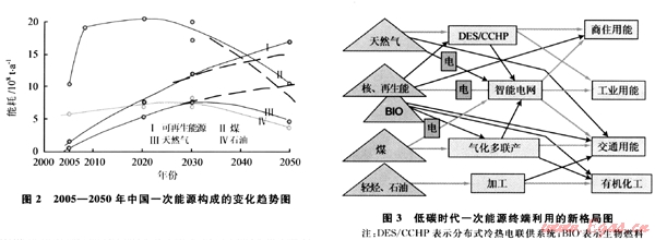 摘要:2009年底的哥本哈根會議開啟了世界走向低碳能源的新時代。為此,分析了低碳時代世界及中國一次能源構(gòu)成的變化情況,結(jié)論指出:在控制溫升不超過2℃的情況下,要求把能源消耗產(chǎn)生的C02控制在100×108t/a,這將導(dǎo)致目前石油、煤、天然氣、核能與可再生能源在總能耗構(gòu)成中的比率逆轉(zhuǎn)和終端用能模式巨變,2020—2050年中國天然氣將在工業(yè)燃料、商住和民用能源、調(diào)峰發(fā)電、交通幾大領(lǐng)域占據(jù)主導(dǎo)或重要地位,并將在冷熱電聯(lián)供分布式能源系統(tǒng)、CNG汽車和LNG汽車技術(shù)領(lǐng)域自主創(chuàng)新,領(lǐng)先于世界;中國非常規(guī)天然氣資源豐富、開發(fā)前景看好,自給率可達70%;2020—2030年中國天然氣消費規(guī)模將達到(4000~6000)×108m3/a,將對世界天然氣市場發(fā)生積極、正面的影響。