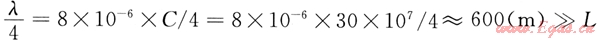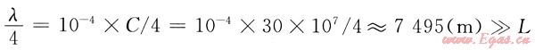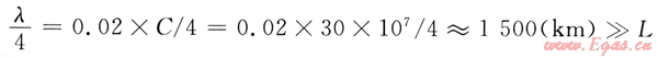 電磁波傳播速度C≈30×107m/s,取L=150m。工頻交流電壓的1/4波長為