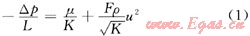 式中L為測點(diǎn)距離;U為平均流速;μ為流體黏度;K為滲透率;F為二次項(xiàng)系數(shù),由多孔介質(zhì)的孔徑、空隙率等特征參數(shù)決定。