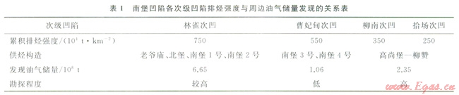 該區(qū)最大的次凹為林雀次凹,其累積排烴強度超過750×104t/km2,主要向其周邊的老爺廟構(gòu)造、北堡構(gòu)造、南堡1號構(gòu)造及南堡2號構(gòu)造供烴,而該4個構(gòu)造已發(fā)現(xiàn)的油氣儲量達到6.65×108t(表1)。而拾場次凹和柳南次凹向其周邊的高尚堡 柳贊構(gòu)造供烴,拾場次凹的累積排烴強度不超過250×l04t/km2,柳南次凹的累積排烴強度不超過350×104t/km2,高尚堡—柳贊構(gòu)造已發(fā)現(xiàn)的油氣儲量只有2.35×108t。由此可見,高尚堡柳贊構(gòu)造盡管受到2個次級凹陷的供烴,但由于這2個次凹的排烴強度均較弱,最終導(dǎo)致該區(qū)聚集的油氣較其他構(gòu)造少。
