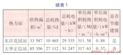 為了保證數(shù)據(jù)的可靠性,匯總了8個熱力站(均屬于即墨金源熱力公司)在2012年12月20日—2013年4月5日期間的能耗分析,見表1。從表1可知,大華正信熱力站耗熱量遠低于其他非節(jié)能建筑熱力站,且不高于節(jié)能建筑耗熱量的平均值;大華正信熱力站耗電量遠低于其他熱力站,耗電量約為其他熱力站的33%。