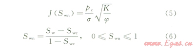 J函數(shù)法是以壓汞數(shù)據(jù)為基礎(chǔ),針對巖石孔喉特征進(jìn)行研究的方法。因?yàn)閷?shí)驗(yàn)室測定的小尺寸巖樣的毛細(xì)管壓力曲線只能代表氣層中的一個(gè)點(diǎn),而要得到能夠表征整個(gè)氣層的毛細(xì)管壓力曲線,就必須將獲得的所有毛細(xì)管壓力資料綜合平均。為此,Leverett提出了“J”函數(shù)的概念和汁算公式: