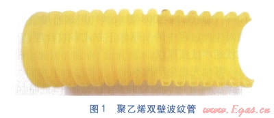 波紋管管材為中密度聚乙烯(MDPE)材料,一般適宜應(yīng)用在低壓管道。有別于普通聚乙烯管,聚乙烯雙壁波紋管見圖1。波紋管采用較薄的雙壁設(shè)計(jì),外壁呈波浪狀,能維持管道形狀,防止穿越彎頭時(shí)管道折疊;內(nèi)壁較平滑,使燃?xì)饬鲃?dòng)時(shí)摩擦造成的壓力損失降至最低。波紋管有相當(dāng)高的柔韌性,大大加強(qiáng)插管時(shí)穿過彎頭的能力,最多可穿過2~3個(gè)90°彎頭,每次插管操作可更換10~15m長的鍍鋅鋼管。使用波紋管修復(fù)取代傳統(tǒng)開挖修復(fù),能減少地面開挖及對庭院環(huán)境的破壞,還可降低修復(fù)成本,加快修復(fù)進(jìn)度。
