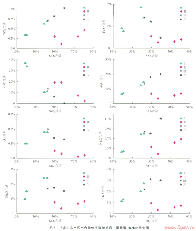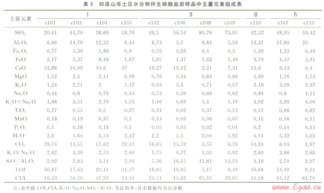 近幾年,在祁連山凍土區(qū)水合物科學(xué)試驗(yàn)鉆探過程中,觀察到大量與水合物伴生的碳酸鹽礦物,這些伴生碳酸鹽礦物(或部分)是否與水合物存在著某種成因上的聯(lián)系,還不得而知。由于碳酸鹽礦物?;煊兴樾汲练e且難以與碎屑沉積分選開來,筆者以祁連山凍土區(qū)新近發(fā)現(xiàn)的與水合物伴生碳酸鹽礦物及其混雜的碎屑沉積(統(tǒng)稱碳酸鹽巖)為研究對(duì)象,從分析伴生碳酸鹽礦物所在沉積巖中主量元素、微量元素、稀土元素等特征入手,探討伴生碳酸鹽礦物可能物質(zhì)來源與沉積條件,試圖揭示不同產(chǎn)狀伴生碳酸鹽巖同水合物的內(nèi)在成因聯(lián)系。
