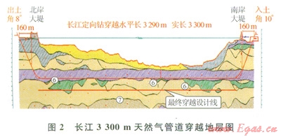 關(guān)鍵詞:長(zhǎng)江天然氣管道 穿越施工 水平定向鉆進(jìn) 對(duì)接施工 長(zhǎng)距離 大扭矩 砂層鉆進(jìn) 鉆井液回收 離心機(jī)