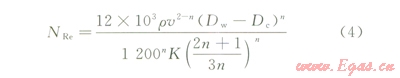 臨界雷諾數(shù)作為判別流體流動狀態(tài)的參數(shù)之一已得到業(yè)界的一定認可。目前,常規(guī)環(huán)空中流態(tài)判別標準采用NRc=3740-1370n。但石油行業(yè)實際應用情況表明:常規(guī)計算中采用的紊流臨界流量比小間隙要偏低15%~20%。因此,將常規(guī)環(huán)空流態(tài)判別標準提高l7.5%,作為小間隙環(huán)空流態(tài)判別標準: