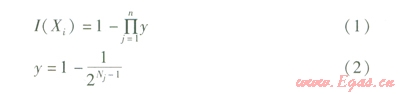 y——中間變量,當(dāng)?shù)?span lang="EN-US">i個(gè)底事件Xi屬于第j個(gè)最小割集時(shí),y采用式(2)計(jì)算;當(dāng)?shù)?span lang="EN-US">i個(gè)底事件Xi不屬于第j個(gè)最小割集時(shí),y取1