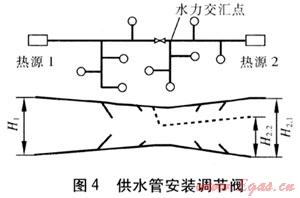 方法二:在水力交匯點(diǎn)熱電廠一側(cè)回水管道上安裝調(diào)節(jié)閥。