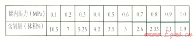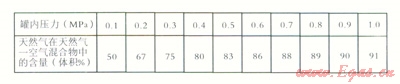 10000m3球罐增壓時,罐內(nèi)壓力與濃度表: