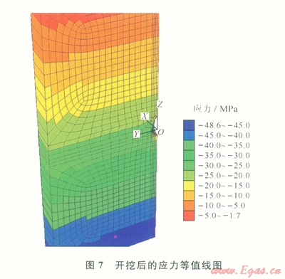利用空模型形成腔體模型,通過設(shè)置groupl為空模型進(jìn)行開挖,開挖后的模型如圖7、8所示。