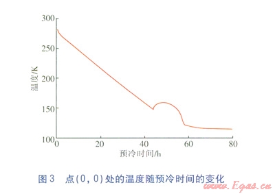 ②針對(duì)LNG儲(chǔ)罐噴淋預(yù)冷過(guò)程,儲(chǔ)罐底部中心的溫度并不是隨著預(yù)冷過(guò)程的進(jìn)行而一直降低的,當(dāng)儲(chǔ)罐底部溫度降低到一定程度后,底部中心出現(xiàn)了溫度不降反升的現(xiàn)象。這是二次回流和底部混凝土向罐內(nèi)導(dǎo)熱共同作用的結(jié)果。