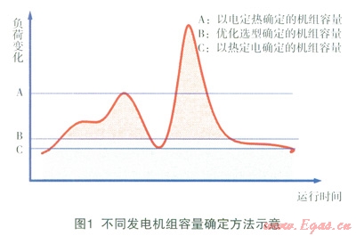 按照以上方法確定的發(fā)電機容量一般介于單純按照以熱定電和以電定熱確定的發(fā)電容量之間,如圖1所示。