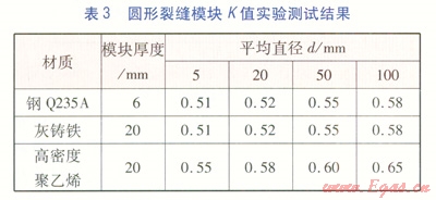 經(jīng)多次實(shí)驗(yàn)驗(yàn)證,在燃?xì)獾蛪汗鉅顩r下,改變?nèi)細(xì)獾膲毫?span lang="EN-US">(緩沖罐內(nèi)燃?xì)鈮毫?span lang="EN-US">),測(cè)試的K值不變,且K值受模塊壁厚影響甚微。由此得出管道裂縫流量修正系數(shù)K的取值范圍,見表4。
