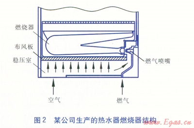 由風(fēng)機(jī)送入的空氣需要通過穩(wěn)壓室、布風(fēng)板進(jìn)行均勻布風(fēng),以保證燃?xì)庖豢諝饣旌衔镌诨鹋派险H紵?。燃燒器?nèi)空氣與燃?xì)獾木鶆蚧旌?,能夠避免燃?xì)馊紵煌耆^而產(chǎn)生有毒有害物質(zhì)的現(xiàn)象,從而提高熱水器安全性能。
