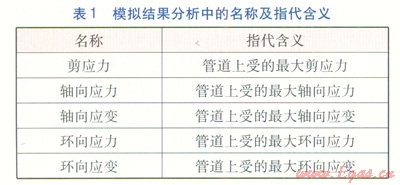 模擬結(jié)果分析中的名稱及指代含義見表1。埋地管道內(nèi)水流速為10m/min。