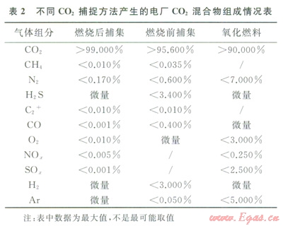 1 不同來源的CO2混合物雜質(zhì)
