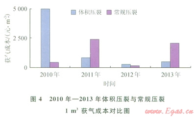 4.1 體積壓裂與常規(guī)壓裂每立方米獲氣成本評(píng)價(jià)
