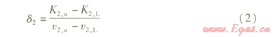 在v1一定的條件下,總換熱系數(shù)絕對(duì)變化率d2的計(jì)算式為: