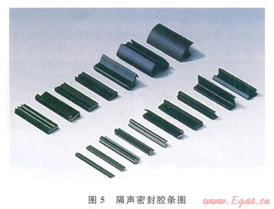 平臺生活樓房間布有400mm×560mm規(guī)格的氣阻型鋼質(zhì)窗,房間原有氣阻型窗玻璃膠條老化開裂,漏聲嚴(yán)重,其現(xiàn)場如圖4所示。對于此類狀況,可將房間舷窗用耐候隔聲膠條替換原有老化膠條。密封膠條的選用應(yīng)符合現(xiàn)場門窗的實(shí)際要求,具有阻燃、防火能力,如圖5所示。