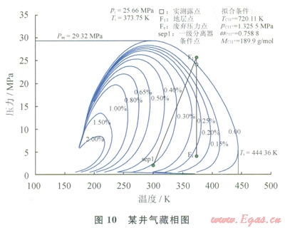 1)凝析氣藏相圖。根據(jù)凝析氣藏不同開(kāi)發(fā)階段需要進(jìn)行測(cè)試,但該數(shù)據(jù)只能反映某時(shí)段凝析氣藏流體的整體情況,而單井流體組成具有特殊性(各井產(chǎn)出流體氣油比、含水率與整個(gè)氣藏不一定相同)和時(shí)效性(各井隨開(kāi)采時(shí)間的增加流體組成不同),采用凝析氣藏相圖與單井實(shí)際情況存在較大差異。