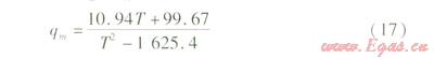 (17)即為常壓罐預(yù)冷液氮流量qm與罐內(nèi)溫度T的關(guān)系。把上述各參數(shù)代入式(15)得: