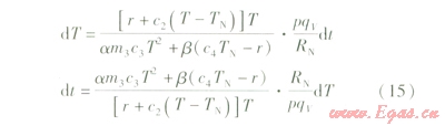 (18)表示了常壓罐預(yù)冷時(shí)間t與罐內(nèi)溫度T的關(guān)系。