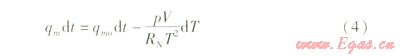 由物料平衡可知,進(jìn)入儲(chǔ)罐的液氮質(zhì)量應(yīng)該等于排出的氣體質(zhì)量加上儲(chǔ)罐內(nèi)氣體的質(zhì)量變化量。瞬態(tài)下的物料平衡方程式為: