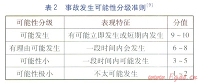 可能性分級準則見表2,事故后果分級準則見表3。