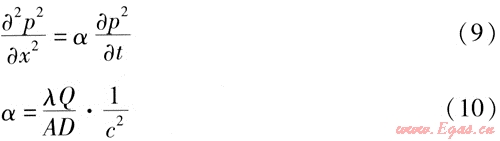 這是一個(gè)非線性拋物型方程,也是目前城市燃?xì)夤艿绖?dòng)態(tài)模擬中使用較廣泛的一個(gè)模型(以下簡(jiǎn)稱模型1),可以用線性化的方法求得解析解。