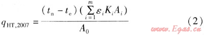 2007版中單位建筑面積通過圍護結(jié)構(gòu)的傳熱耗熱量qHT,2007,的計算式為: