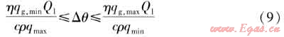 根據(jù)式(7)、(8),可得通過(guò)燃?xì)忾y門(mén)和水量調(diào)節(jié)閥可調(diào)節(jié)的水溫升范圍,見(jiàn)式(9)。