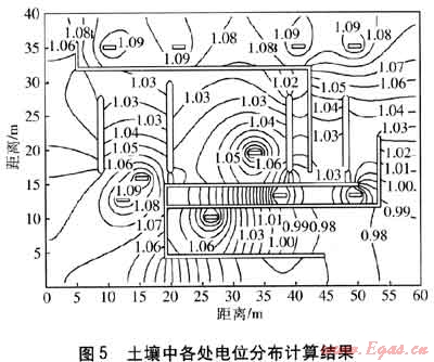 利用數(shù)值模擬技術(shù)計(jì)算了該廠站內(nèi)陰極保護(hù)電位的分布,計(jì)算所采用的數(shù)學(xué)模型見文獻(xiàn)[23]。