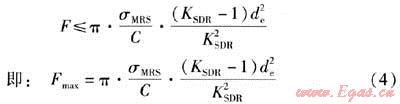 規(guī)程的公式過于簡單,公式表示Fmax僅與PE管材的公稱外徑de及標準尺寸比KSDR有關(guān)。修正后的公式相對復雜,增加了σMRS和C兩個變量,這就克服了規(guī)程公式的不足之處,可以充分體現(xiàn)PE管道性能及總體設計系數(shù)的差異性。