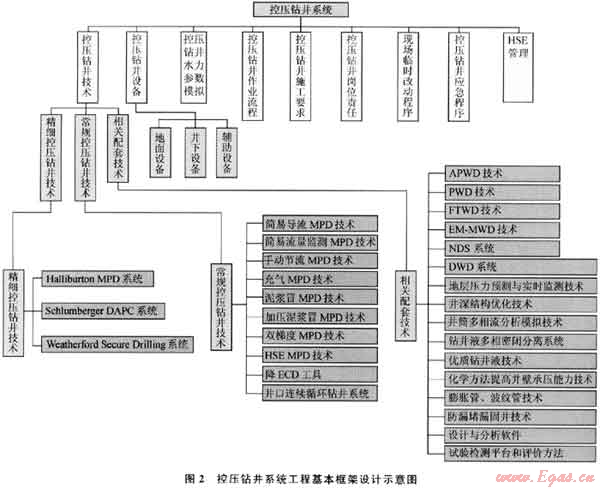 控壓鉆井系統(tǒng)包括:①控壓鉆井技術(shù);②控壓鉆井設(shè)備;③控壓鉆井水力參數(shù)模擬;④控壓鉆井作業(yè)流程;⑤控壓鉆井施工要求;⑥控壓鉆井崗位責(zé)任;⑦現(xiàn)場臨時改動程序;⑧控壓鉆井應(yīng)急程序;⑨HSE管理。以下分述之。