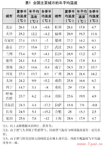 4.1 全國主要城市的年平均溫度(供參考)。見表1